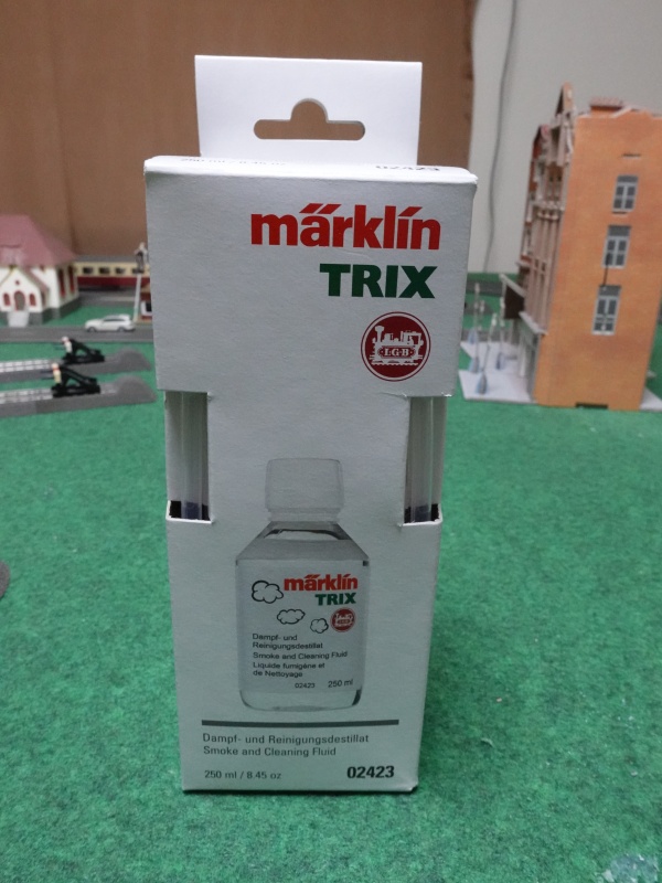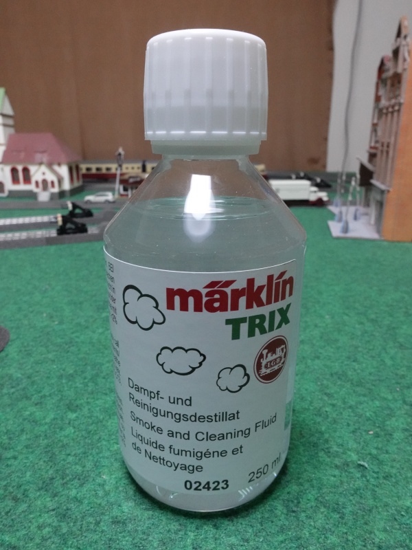 | (1)SEUTHE廃業ということで,Märklin 02423 発煙 & クリーニング液 250 mlを買ってみた. | (2)発煙液としては,SEUTHEと見分けがつかないぐらいの品質. |