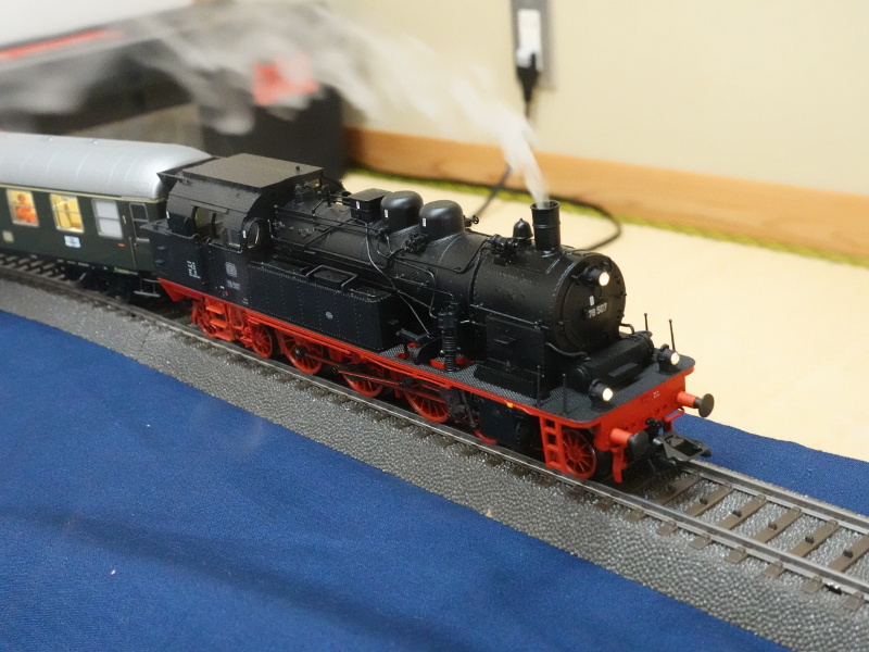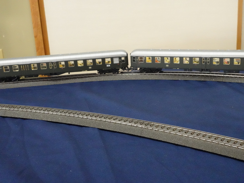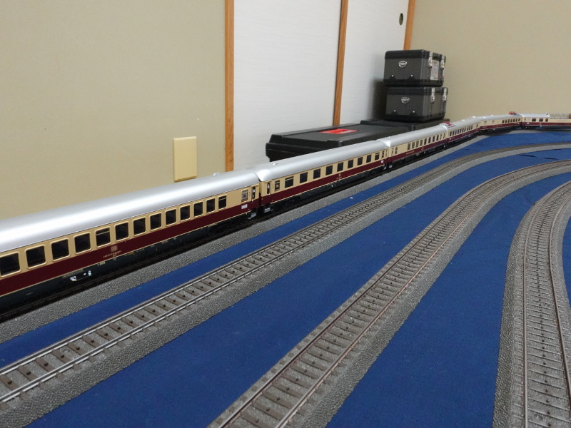 MärklinはAKEをリリースしないだろうという読みだが,来年室内照明付きをリリースしたら怒るぞ(苦笑). 本当はフル編成に2両足りないのだが,これ以上長くしても機関車の牽引に多大な影響を及ぼすと考えて,これくらいで勘弁しておいてやる. まあ実車を撮影してきたしねぇ...