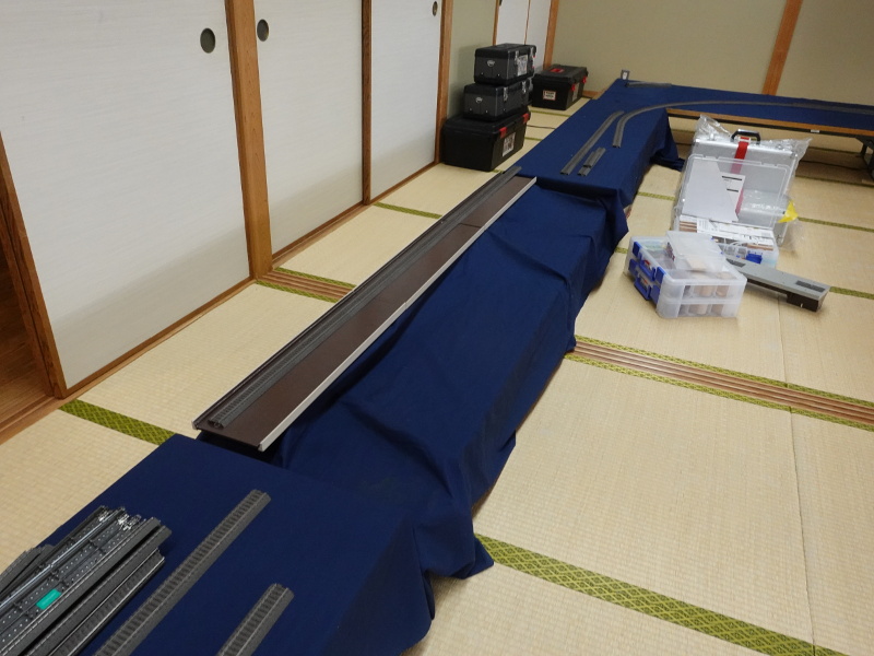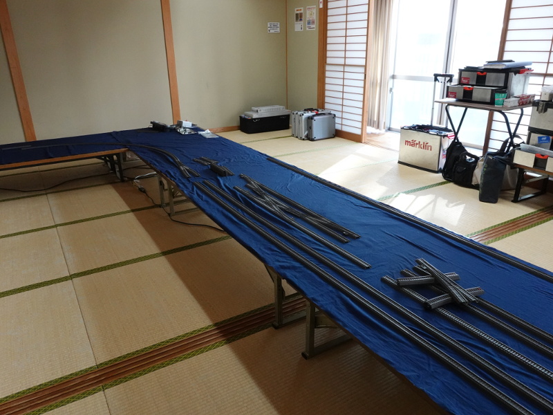 | (1)オーバルを組み立てていく. | (2)毎回異なる形のオーバルになるのが千里丘運転会の特徴. |