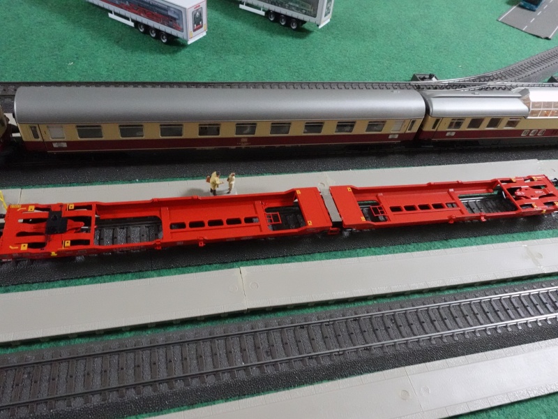 47477 連接トレーラー運搬貨車. トレーラーはBR 01とKrokodilの図柄で,実在する.